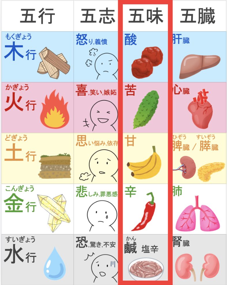 水行:鹹味(塩辛い)